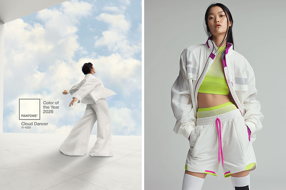 Na moda, o Cloud Dancer se traduz em leveza e sofisticação silenciosa. Trata-se de um branco elegante sem esforço, que representa uma escolha consciente pela simplicidade. Versátil e atemporal, funciona tanto em propostas minimalistas - com camisas clássicas, camisetas, jeans, alfaiataria ou peças esportivas - quanto como base neutra para paletas mais ousadas. O tom acolhe outras cores: harmoniza com pastéis suaves e neutros orgânicos, cria contraste preciso com o preto e permite que tonalidades vibrantes ganhem protagonismo. Também valoriza texturas macias, como lãs fofas, tricôs encorpados, malhas fluidas, fibras naturais e chiffon leve. Nos acessórios - óculos, cintos, bolsas, calçados e tênis - imprime uma elegância discreta e contemporânea.